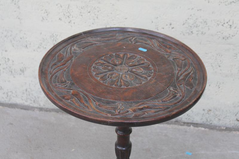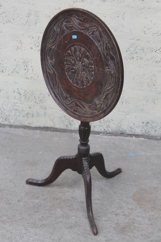 Lot 349 - OAK TILT TOP PEDESTAL TABLE - CARVED FLOWERS/FOLIAGE