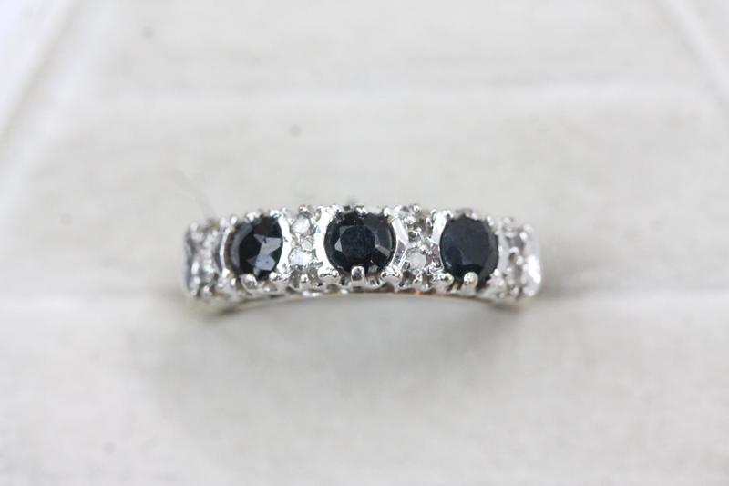 Lot 123 - 9CT GOLD, DIAMOND & BLUE STONE RING (J)