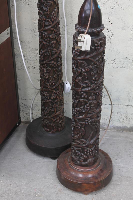 Lot 366 - 2 STANDARD LAMPS - CARVED WOOD
