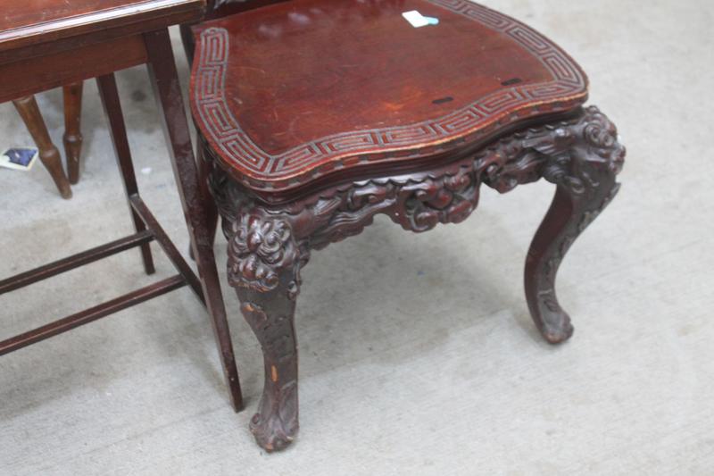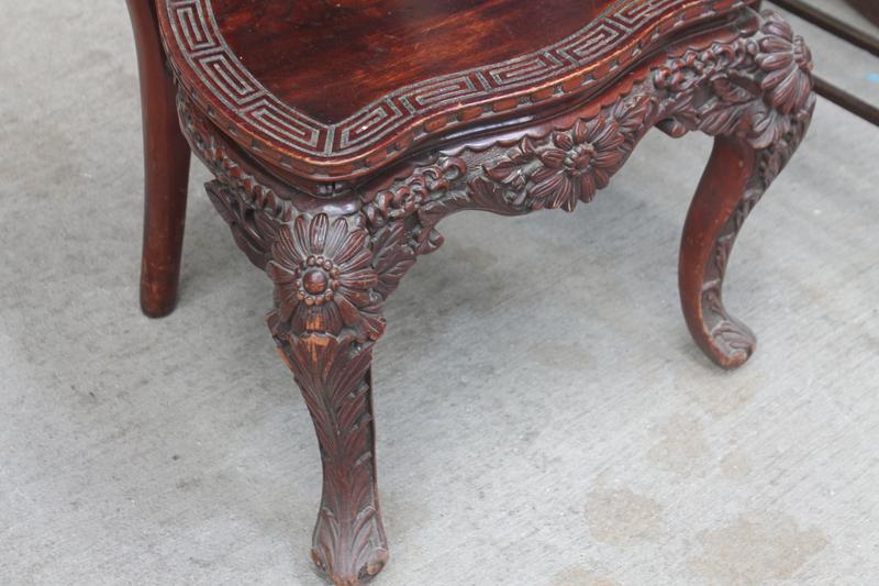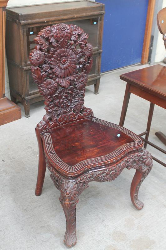 Lot 365 - CARVED ORIENTAL HARDWOOD CHAIR - CHRYSANTS
