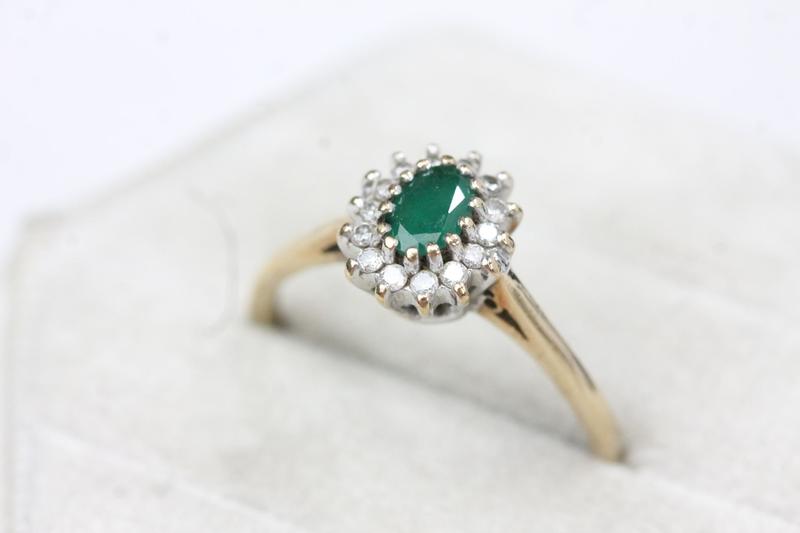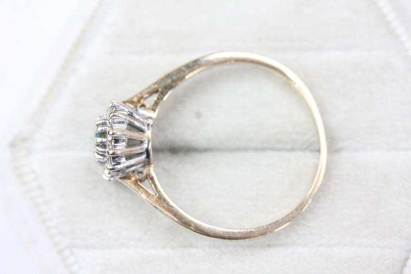 Lot 116 - 9CT GOLD, GREEN STONE & DIAMOND RING (R-S)