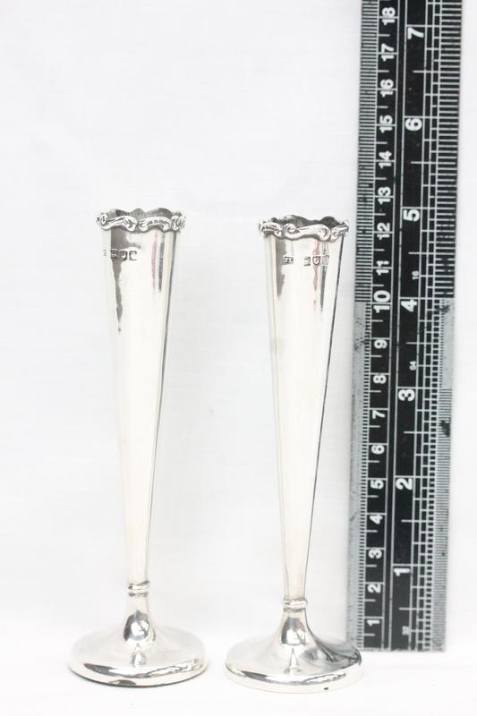 Lot 121 - PAIR SILVER BUD VASES - LONDON