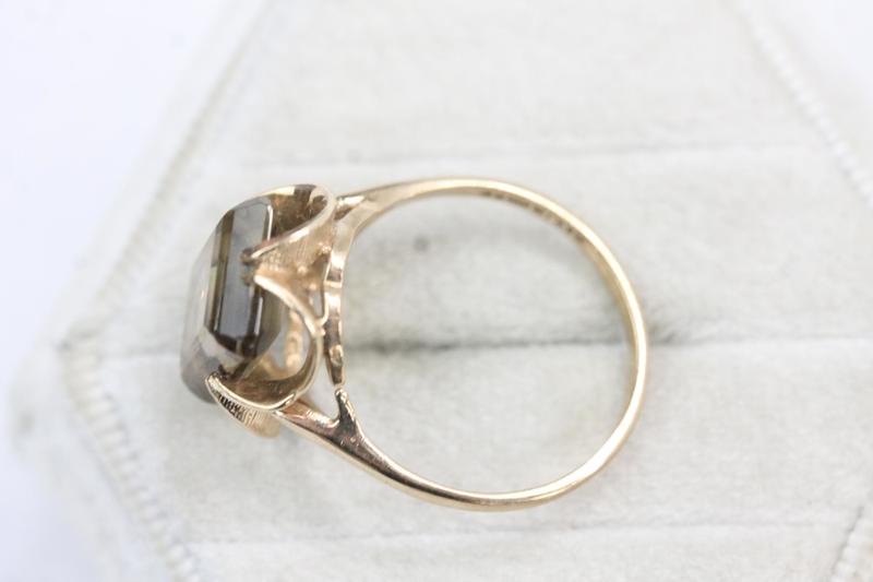 Lot 127 - 9CT GOLD, SMOKEY QUARTZ RING (P-Q)