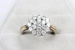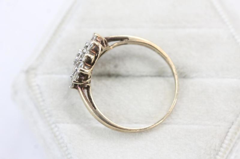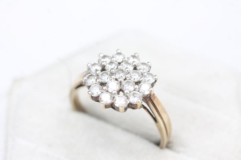 Lot 131 - 9CT GOLD, WHITE STONE CLUSTER RING (R)