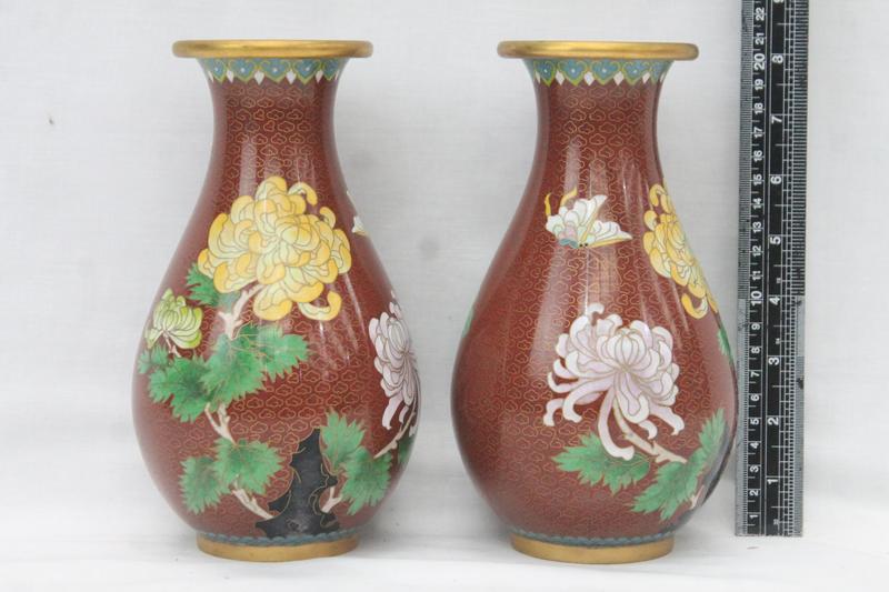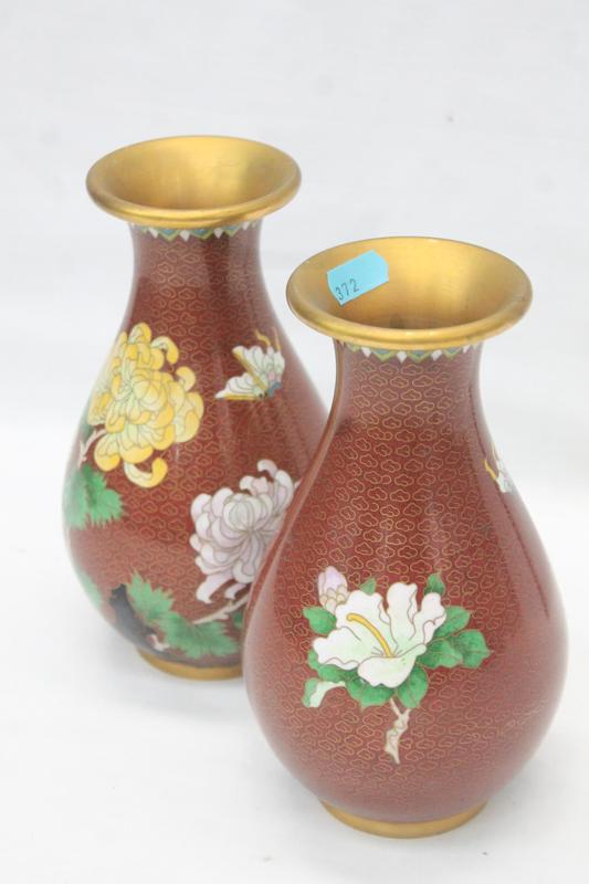 Lot 140 - PAIR CLOISONNE VASES - FLORAL