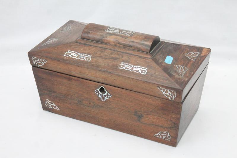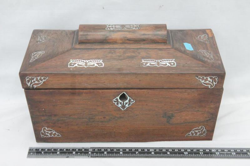 Lot 19 - ROSEWOOD & MOTHER OF PEARL TEA CADDY