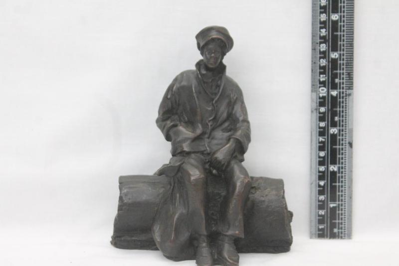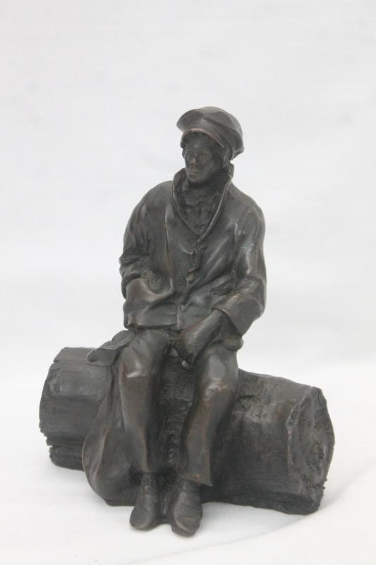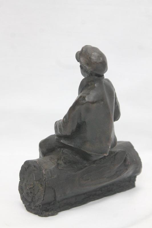 Lot 155 - COLD CAST BRONZE - MAN SITTING ON LOG