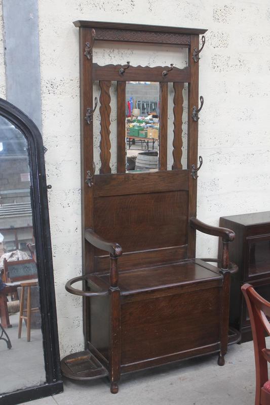 Lot 403 - OAK HALL STAND WITH STORAGE SEAT