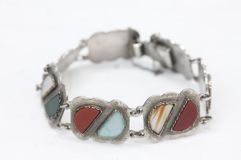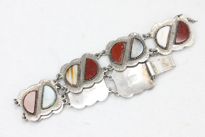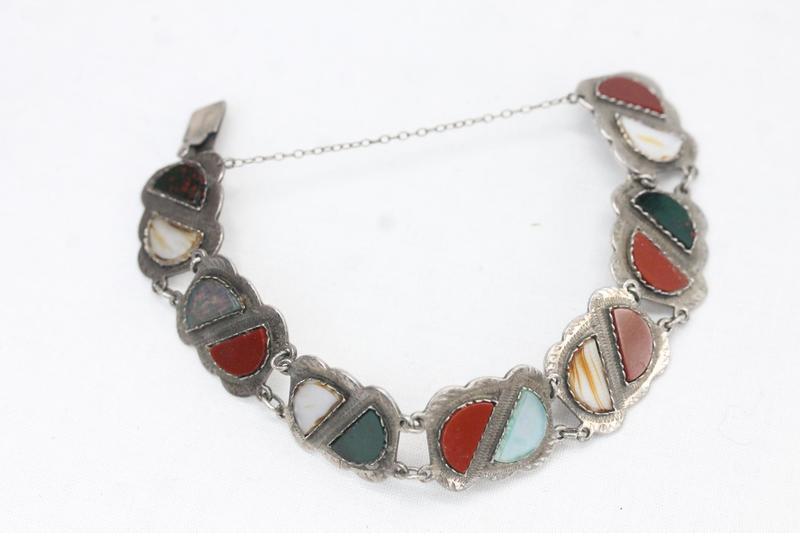 Lot 113 - SILVER, AGATE & HARDSTONE BRACELET - WARD BROS, EDINBURGH