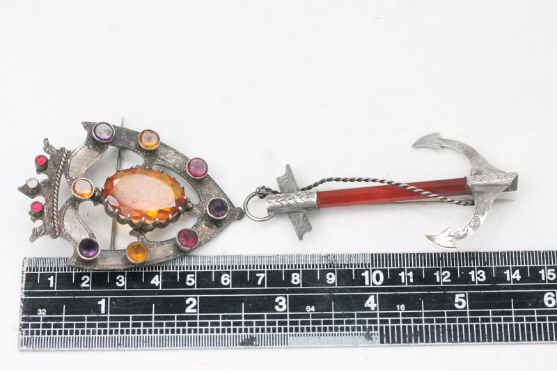 Lot 156 - SILVER SCOTTISH GEMSTONE BROOCH & ANCHOR BROOCH