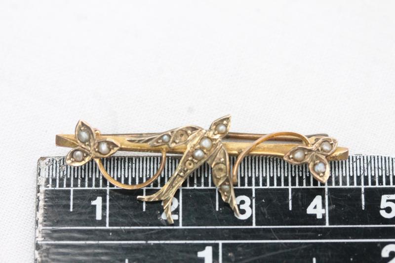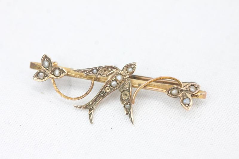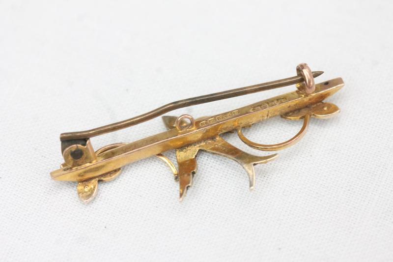 Lot 144 - 9CT GOLD & PEARL 'SWALLOW' BROOCH
