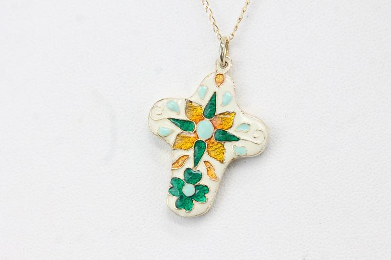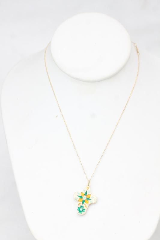 Lot 152 - 9CT GOLD CHAIN, SILVER & ENAMEL 'CROSS' PENDANT
