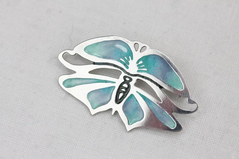 Lot 147 - PAT CHEENEY SILVER & ENAMEL 'BUTTERFLY' BROOCH