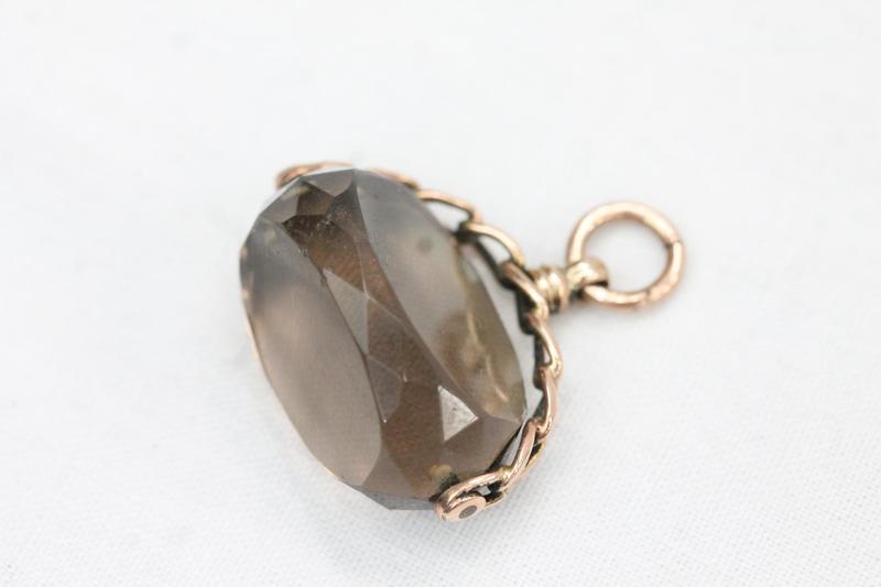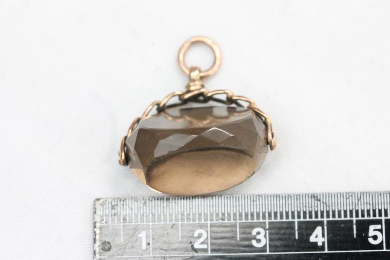 Lot 153 - 9CT GOLD, SMOKEY QUARTZ SWIVEL FOB