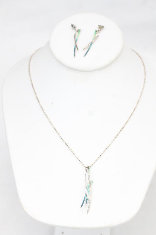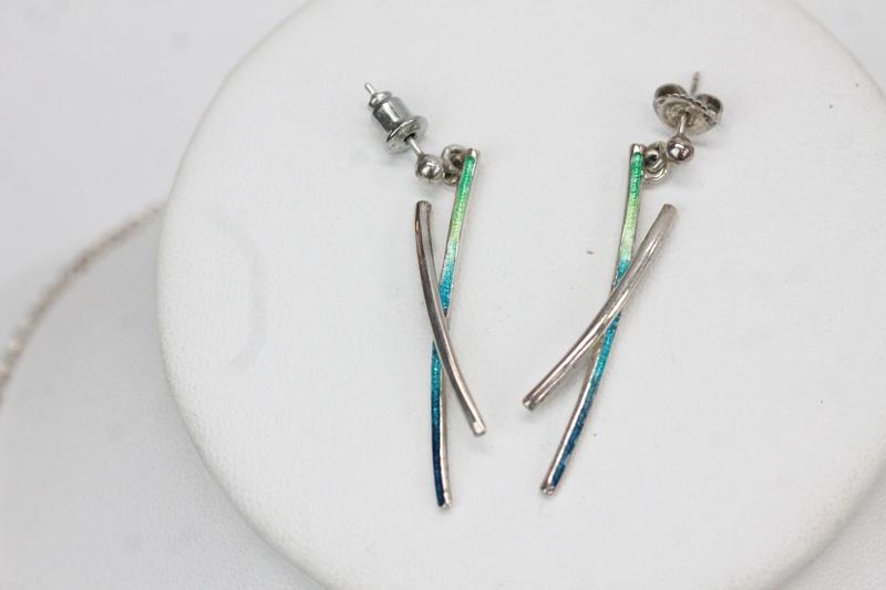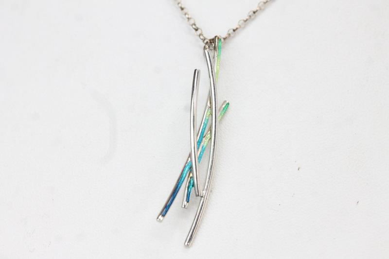 Lot 146 - SHEILA FLEET SILVER & ENAMEL 'WILD GRASSES' NECKLACE & EARRINGS