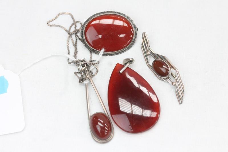 Lot 165 - SILVER & RED STONE BROOCHES & PENDANTS