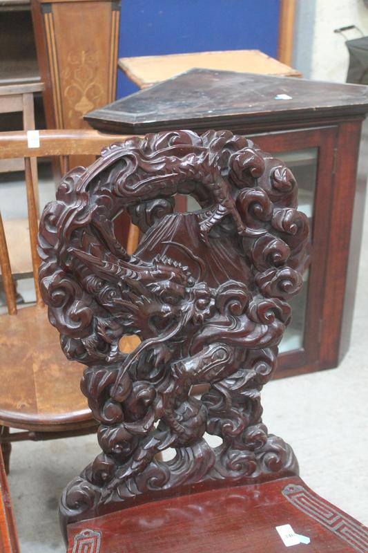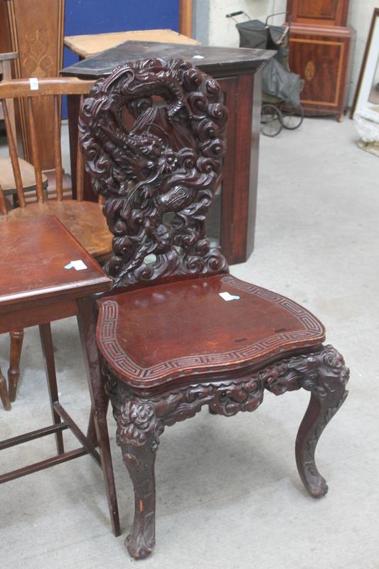 Lot 346 - CARVED HARDWOOD CHAIR - DRAGON BACK REST - ORIENTAL STYLE