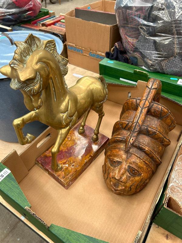 Lot 59 - BRASS HORSE ON MARBLE & ETHNIC HEAD BRASS HORSE ON MARBL £50