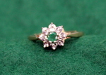 Lot 199 - 9ct Gold Emerald & Diamond flower set ladies ring - ( size O ) £75