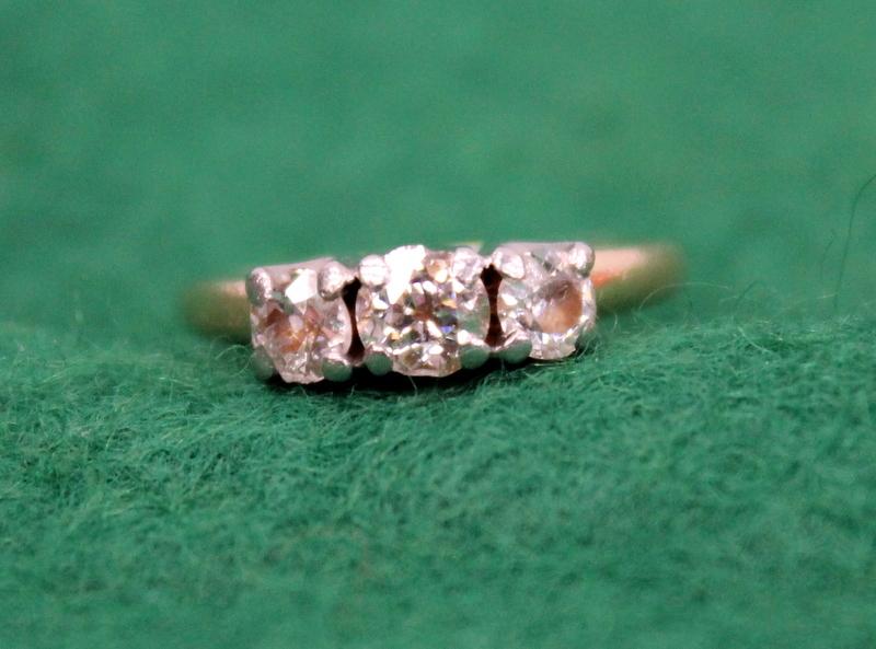 Lot 197 - 14 ct Gold 3 stone .75ct diamond ladies ring - (Size J 1/2 ) Not Sold