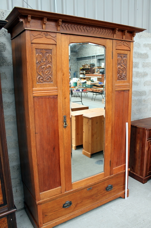 Lot 453 - Arts & crafts mirrored door wardrobe £90