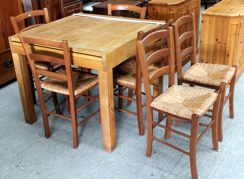 Lot 431 - Burma teak sideboard & drop leaf dining table & 6 chairs Not Sold