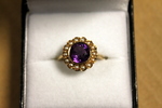 Lot 154 - 9ct gold vintage amethyst & seed pearl ladies ring £125