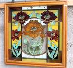 Lot 395 - Framed Arts & Crafts stained glass (poppies) £70