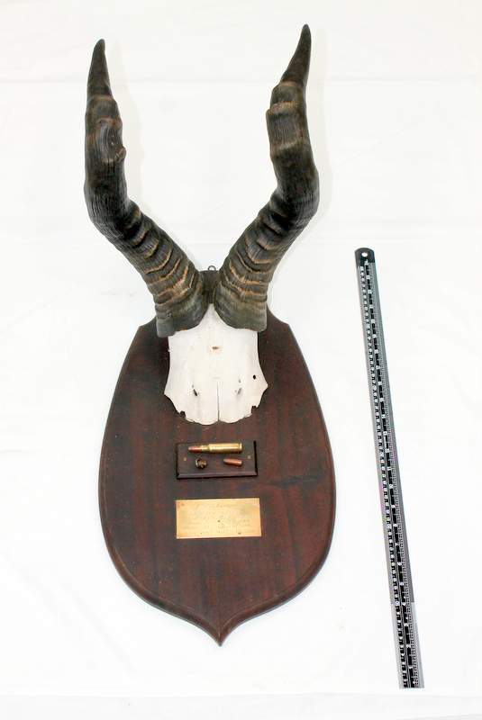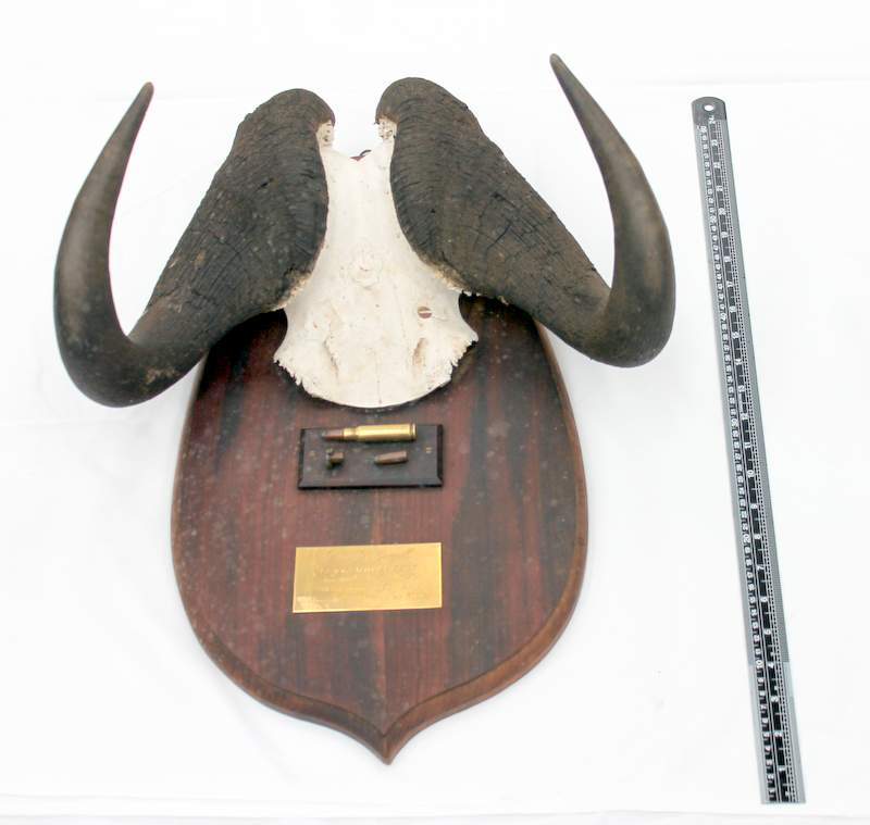 Lot 386 - 4 sets of shield mounted antlers (Blue Wildebeest, Gems Bok, Cape Hartebeest & Black Wildebeest) £300