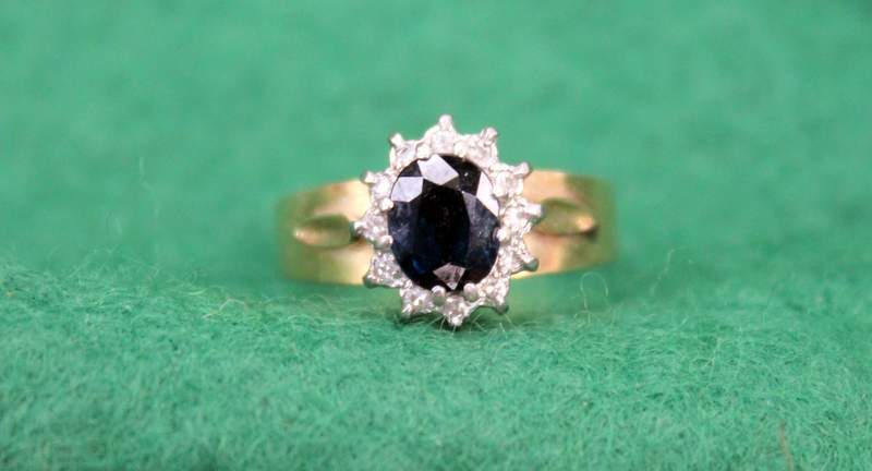 Lot 204 - Ladies gold ring with sapphire & diamonds £100