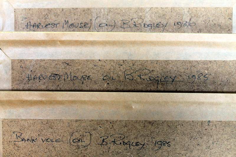 Lot 311 - Harvest Mouse & Bank Vole oil paintings by B Ridgley £60