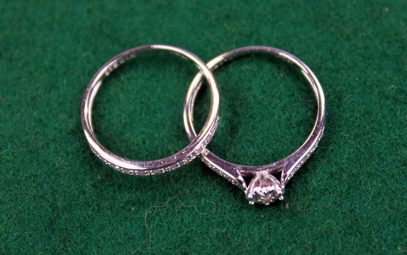 Lot 203 - White Gold Diamond Engagement & Eternity Ring set £42