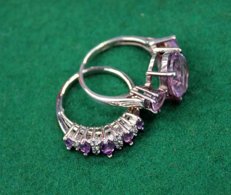 Lot 212 - 2 Silver & Amethyst Ladies Ring £100